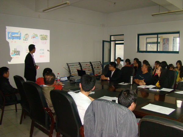 安老师讲座内容主要分三个方面:第一,现场心肺复苏术(应用于触电、溺水、重物砸击、高空坠落等伤情),通过假人模拟动作示范,让老师们清楚地了解到一些基本的日常救护知识;第二,现代办公职业病的预防及改善(如肩周炎、颈椎病、腰肌劳损等),用仪器找准人体准确穴位进行按摩,增强大家平时的预防能力,提高生活质量;第三,慢性病的防治(如高血压、糖尿病、心脏病、冠心病等),要求大家注意饮食,尽量做到合理膳食。通过此次讲座,老师们都深感受益匪浅,纷纷表示下次要多组织此类讲座,在生活中会时刻注意“安全第一、预防为主”的方针。