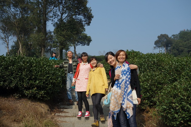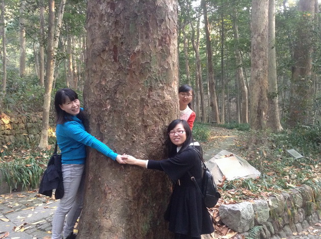 云栖竹径有树龄千年以上的枫香树,树干三人合抱,高近40米,是著名古树;也有千年银杏树,秋风丝丝,枝抖金黄;路边有池,名曰“洗心池”,池水清澈见底;竹径弯处有亭可憩,史载清康熙帝曾多次来此,并赋诗题词。这里远离闹市,风景优美,环境清静,真是个疗养休息的好地方,阅同事们满脸笑容,便可知在大自然美景洗涤下,工作的疲惫已荡然无存了。
