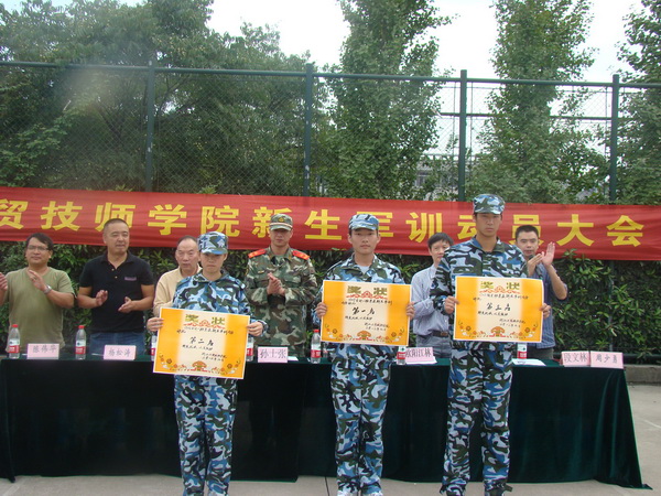 9月27日下午二时三十分,我院领导、杭州武警支队领导及教官、辅导员、近三百名新生及其班主任老师,在浙江财经大学操场,举行本年度军训会操仪式。