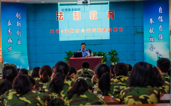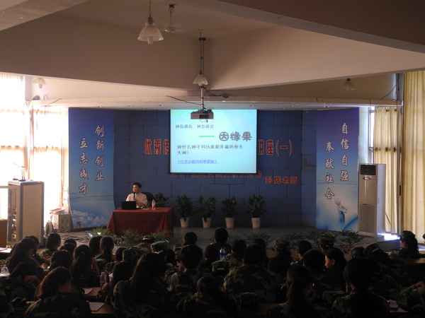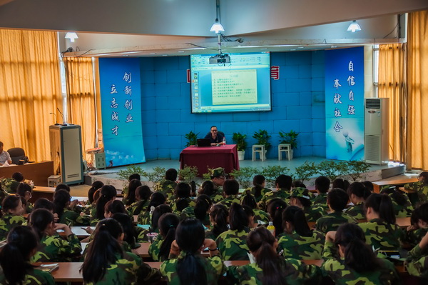 9月27日下午,技师学院(温州校区)在阶梯教室举行了新生军事教育大会。温州市海防营童宗兴指导员和2013级新生班级同学共同参加了此次大会。