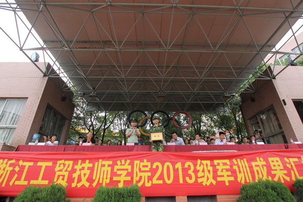 会操结束后,出席大会的领导为获得军训表彰的优秀班级、宿舍及军训标兵进行颁奖,2013级新生军训会操顺利结束!