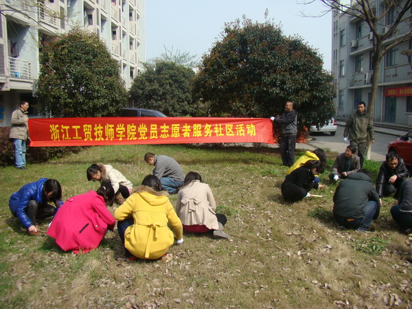 为充分发挥党员在社区建设中的先锋作用和模范作用, 2013年3月14日下午,浙江工贸技师学院党支部组织全体党员和积极分子进入杭钢紫元社区,参与社区“建设美丽家园”之除草活动,党支部书记孙蔚同志身体力行,以身示范,每一个共产党员也都积极“亮身份、树形象、做贡献”,热情满怀的投身到劳动中,认真履行党员的责任和义务,不仅在社区群众中树立了共产党员的优秀形象,发挥了先锋模范作用,而且增强了基层党组织的凝聚力、向心力、战斗力和影响力。
