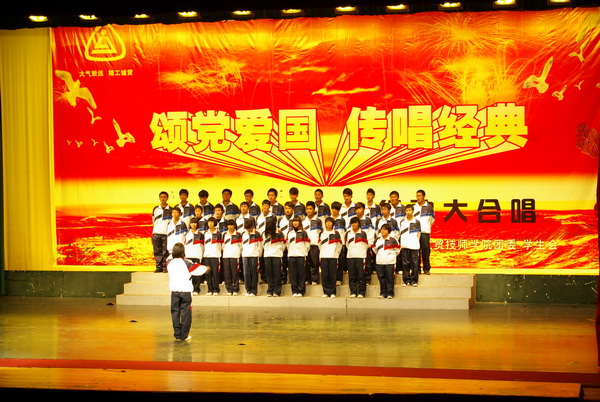 11月29日18:00,大幕缓缓拉开,精彩纷呈的“好戏”就开始“连台”了。一首红歌,记录一段峥嵘岁月;一首红歌,象征一面光辉旗帜。伴着两位主持人激情澎湃的言语,一段回顾建党九十载雄伟壮丽的历程开场白拉开了整场比赛的序幕。莅临本次大合唱比赛指导的领导和嘉宾有院长孙蔚教授、副院长曹琦老师、副院长欧阳江林老师、学管中心段文林老师和招生就业办主任陈伟华老师,以及学院工会主席俞欢春老师。本次比赛还特别邀请了综合办林玲老师、基础教研室韩征远老师和吉利汽车研发中心音乐老师刘云昊先生担任本次比赛的评委。本次参加比赛的班级突破以往的沉闷的歌唱形式,如1203商务英语班选择了歌曲《Tomorrow Will Be Better》(英文版《明天会更好》),既唱出了自己的专业特色,更在表演中穿插入了手语表演;1211会计二班的男生们身着中山装,精神笔挺,女生们穿着五四学生装温婉可人,款款登场,《红星歌》的和声清远悠扬,《光阴的故事》带着淡淡的忧伤和离愁,将在场老师们带入了回忆的青春;1208电子商务(3+2)班的同学们队列整齐,声音齐整,节奏正,音准准,气势磅礴,余音绕梁,1208班最后也拿到了整场比赛的最高分;1202国际贸易班的同学们在演唱中手捧着蜡烛缓缓登场,此时灯光渐暗,烛光掩映着每个同学的脸,天真、美丽在她们脸上展现,仿佛梦想和希望在此刻、在更远的明天,依旧不会褪色,温馨而浪漫;气氛在1108数控维修班出场时达到高潮,铿锵有力的歌声,帅气精神的海魂衫,激情投入的指挥,引来一阵又一阵的尖叫。比赛在1206班的《我的好兄弟》中进入尾声。本次比赛最后由1206电机技术应用班、1102电子技术应用班、1210会计一班、1203商务英语班和1103电子商务班获得三等奖,1108数控维修班、1201数控加工班、1105市场营销班和1204数控维修版获得二等奖,1208电子商务(3+2)、1211会计二班和1202国际贸易班获得一等奖,由欧阳江林副院长、曹琦副院长和孙蔚院长分别为三、二、一等奖颁奖。