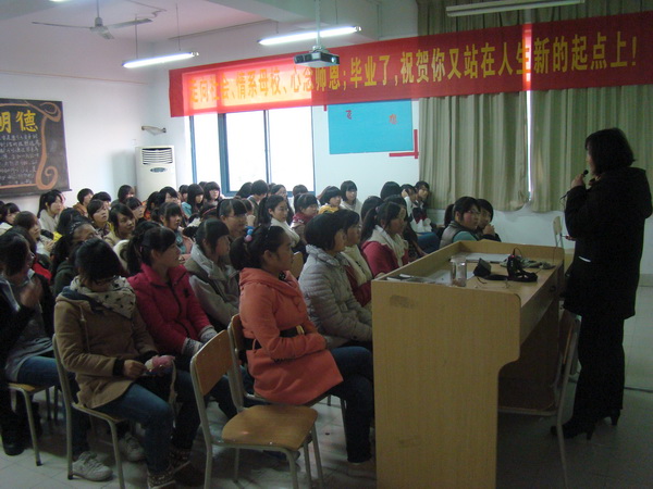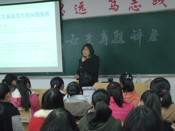 为进一步普及心理知识,优化学生心理素质,引导学生树立正确的生命观、生存观、生活观,提高大学生特别是女生对于“自重、自尊、自爱、自强”的确切理解,让女生顺利度过青春期,拥有一个纯洁的花季,做一名积极向上的阳光女性,12月05日下午3:30,由学管中心、校委员会主办的,学生会承办的女性专题讲座于1209电子商务班教室举行。此次讲座由本院院长孙蔚教授主讲。该讲座邀请了全体女生赴会,作了女生青春期生理、心理知识和礼仪知识专题讲座。