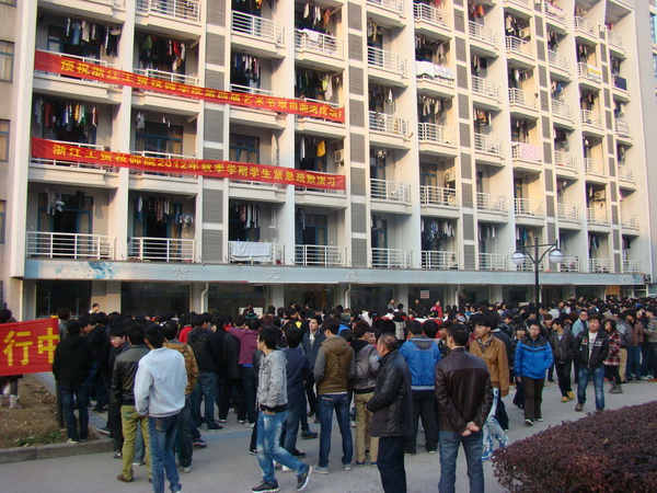 为了确保我院学生在遇到特殊灾害能在最短的时间内安全迅速的撤离到安全地区,同时为了加强学校安全教育和管理广泛深入地开展应急疏散工作,使师生的应急疏散能力、自我保护能力以及安全意识得到提高。我院于2012年12月12日对全体学生进行了安全疏散演习。