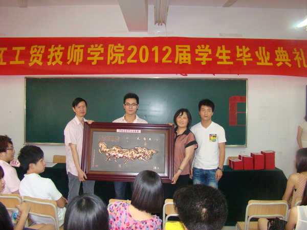 毕业典礼结束时,全体2012届毕业生向母校赠送纪念品——《八骏全图》(浮雕),以此寓意送给自己,也送给正在举步腾飞的工贸学院和一代代的新老工贸人。