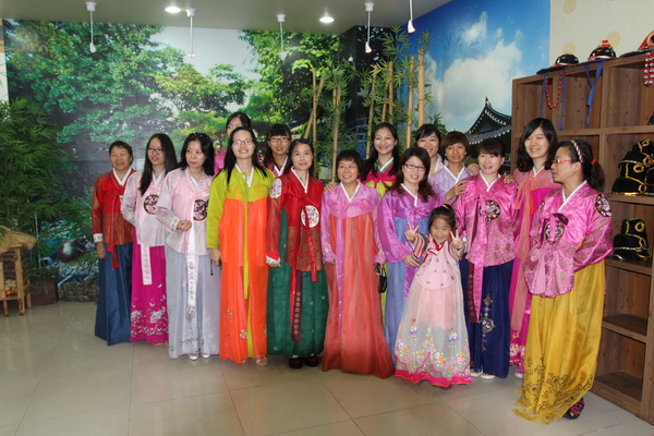 这次活动,参观了1392年创建朝鲜王朝的太祖李成桂建成的“景福宫”,游览了“南山韩屋村”、民俗博物馆及总统府青瓦台,见识了城邑民俗村及首尔梨花女子大学,欣赏了著名的汉城夜景,了解了韩国的历史及现代文化。活动期间还去了韩国许多自然景区,如蜜月岛屿--济州岛,爬了城山日出峰,看了济州岛柱状节理带及具有神话传说的“龙头岩”,走了“神奇之路”(这是一段斜坡路,但是放在路面上的空瓶空罐都会沿着上坡方向滑动)。最难忘的还是在泡菜学校,老师们亲手体验韩国国粹—泡菜的全部制作过程,这是韩国最有特色传统文化,据说这是每个韩国少女结婚前都要学习的课程,然后穿韩服拍照。购物也是韩国游的一大亮点,新罗免税店、明洞购物街、乐天百货是韩国代表性的购物街,高档商品与国内比相差几千元,在这不仅可以购买服装、鞋类、杂货和化妆品,还有各种饮食店,让员工满足购物欲望同时一饱眼、口福。在繁华的首尔街头,老师们领略了韩国城市的时尚和和繁荣。