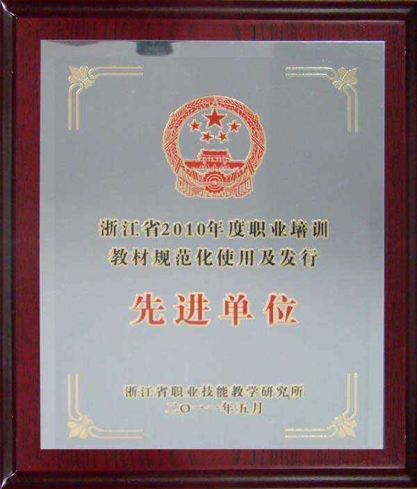 2010年,全省技工院校积极做好职业培训教材规范化使用及发行工作,对提高教学规范化管理和保证教学质量起到了促进作用。浙江省职业技能教学研究所浙职技教[2011]28号文件<<关于表彰2010年度职业培训教材规范化使用及发行先进单位的通知>>指出:经综合评定,我院等18所院校在职业培训教材规范化使用及发行方面成绩显著,被评为2010年度职业培训教材规范化使用及发行先进单位,受到表彰。