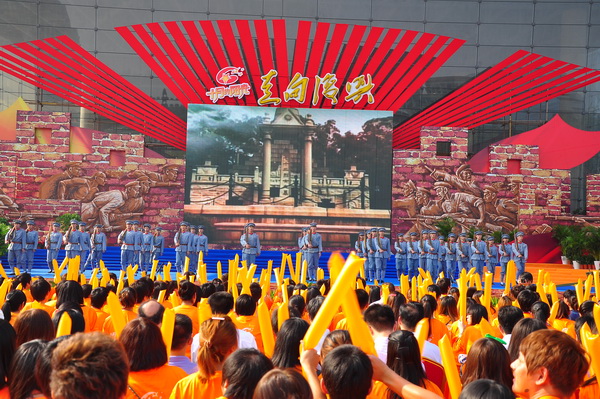 2011年10月9日下午,应杭州钢铁集团有限公司邀请我院400名学子参加了2011“十月的阳光·走向复兴”浙江儿女纪念辛亥革命100周年大型广场电视文艺直播活动。活动由小强、左岩、席文、涵含联袂主持,艺术家瞿弦和、严圣明、于钟以及青年演员徐令堰、方瑶等献上精彩演出。活动以“走向复兴”为主题,以“开启革命之旅”为主线,分为《觉醒·光辉的追寻》、《奋斗·壮丽的征程》、《复兴·伟大的跨越》3个篇章,再现中华民族从黑暗走向光明、从屈辱走向强盛的百年历程,表达中华儿女用实际行动振兴中华的伟大志向,歌颂今日祖国的繁荣昌盛和伟大成就。