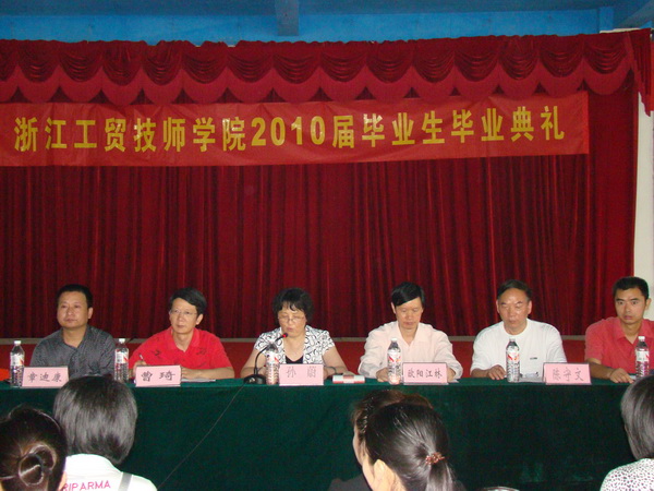 6月27日上午,浙江工贸技师学院2010届毕业生毕业典礼在体育活动中心隆重举行。浙江工贸技师学院院长孙蔚教授、副院长曹琦老师,院长助理欧阳江林老师等领导出席了毕业典礼。毕业典礼由副院长曹琦主持。