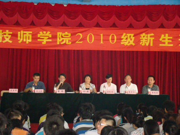 孙蔚院长首先向全体新生致欢迎词,并简要介绍了学校概况、学校的发展历程、学校的办学特色、办学理念、教育教学、师资队伍、实训实验室设施等基本情况。她要求2010级新生秉承“大气致远、精工诚贸”的校训,先学会做人,后做事,学会反思自己,不断提高自己的综合素质。