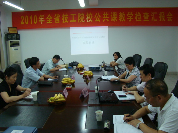 根椐《浙江省人力资源和社会保障厅关于组织开展2010年全省技工院校公共课教学检查工作的通知》(浙人社发【2010】132号)文件安排,组织开展公共课教学检查,2010-9-20下午浙江省职业技能教学研究所潘伟梁所长,程叶军、王丽慧科长等一行来到我院。