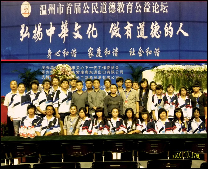 十月十四日至十月十七日,温州市首届公民道德教育公益论坛在温州体育中心举行,我院439名同学赴会,尤其是30名建党对象全程参与了此次论坛。