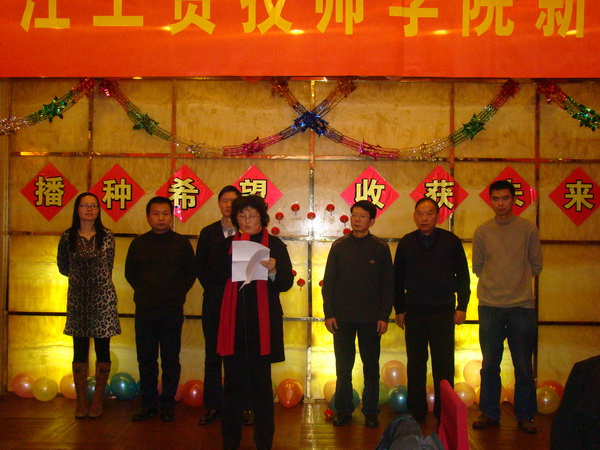 首先技师学院院长孙蔚教授作了2009-2010学年第一学期工作总结,她全面总结了学院取得的主要成绩、存在的主要问题以及改进措施和下步努力的方向。 2010年的成绩,倾注了全体教职工的心血和汗水,是大家共同努力的结果,她感谢大家过去一年的辛勤工作!豪情满怀辞旧岁,继往开来迎新春。在新的一年里,2010年要开创各项工作的新局面,她希望大家在新的一年里继续团结进取、拼搏奋斗。在新的一年里,干出新的业绩,做出新的贡献,争取技师学院新发展,共同创造工贸技师学院美好未来! 最后,她转达总院何向荣院长向全体教职工致以最诚挚的问候和最美好的祝愿,恭祝全体教职工新春快乐、身体健康、合家幸福!