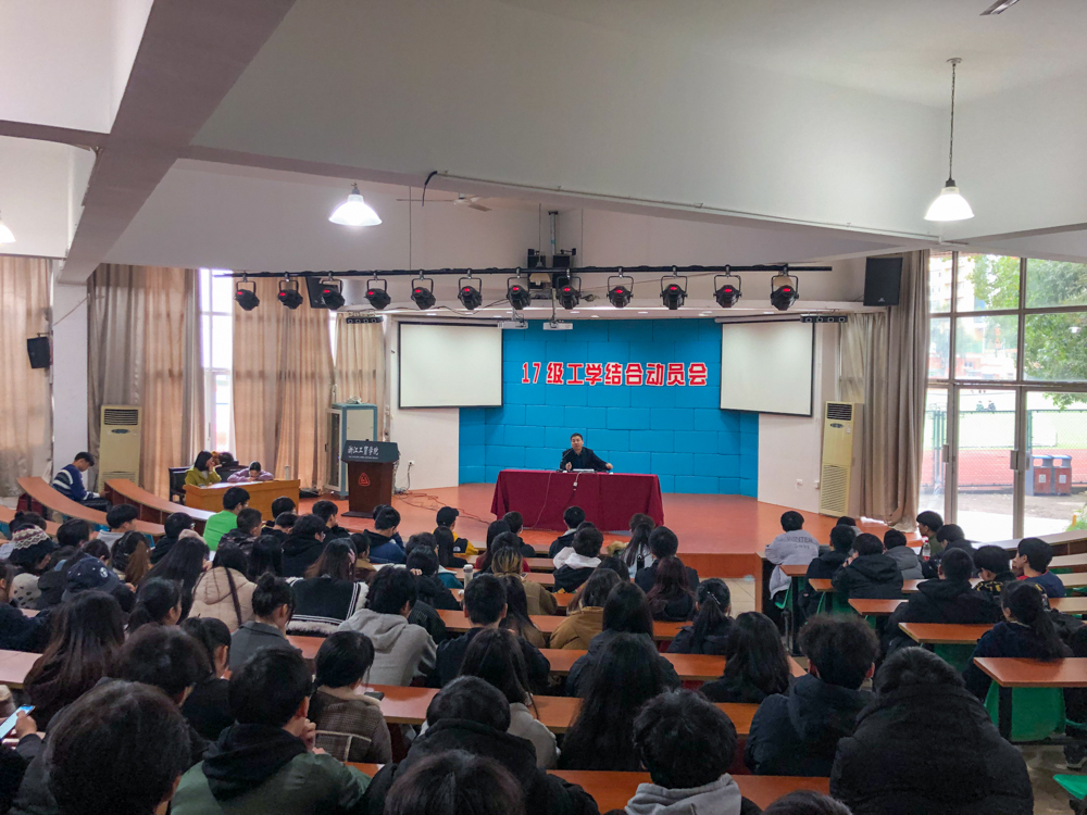 工学结合是技工院校教学的一个重要环节,同时也是学生专业学习成果的一大检验,是学习知识和能力的综合提炼、提升过程,有助于同学们提前适应企业管理模式,为将来步入职场奠定基础。根据2017级教学计划安排,确保工学结合高质量完成,12月26日中午,在一号教学楼阶梯教室举行17级工学结合动员大会,会议由吴姿蓉教师主持,副书记、副院长程瑞存教师作动员,他首先就开展工学结合的重要性进行全面阐述,其次详细介绍此次招聘企业的人才需求和应聘工作的一些注意事项。最后就工学结合相关事项做了具体说明和要求。