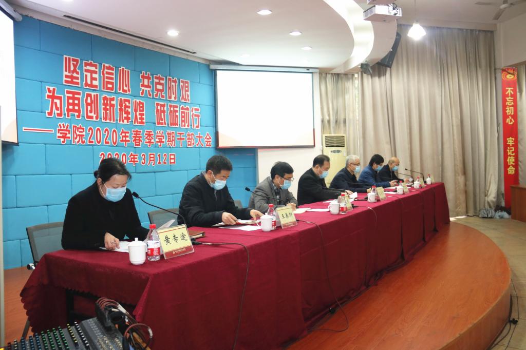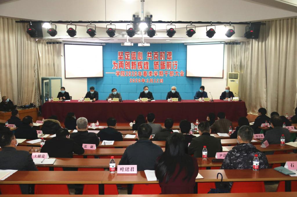 3月12日下午,浙江职业技术学院2020年春季学期干部大会在学院阶梯教室举行,院领导班子成员、全体中层干部参加会议,会议由院党委书记盖庆武主持。
