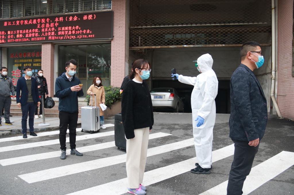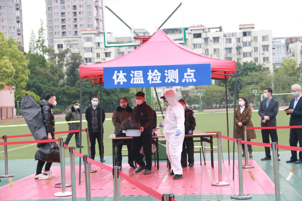 应急处置演练模拟了“返校报到日学生出现体温异常”“开学后学生在宿舍内出现发热”“学生在教室上课时身体不适”等场景,对出现身体异常的返校学生从发现、报告、隔离、体温复测、信息询问、安排送医、密切接触者排查、信息报送、重点区域消杀等应急处置流程进行了全过程演练。
