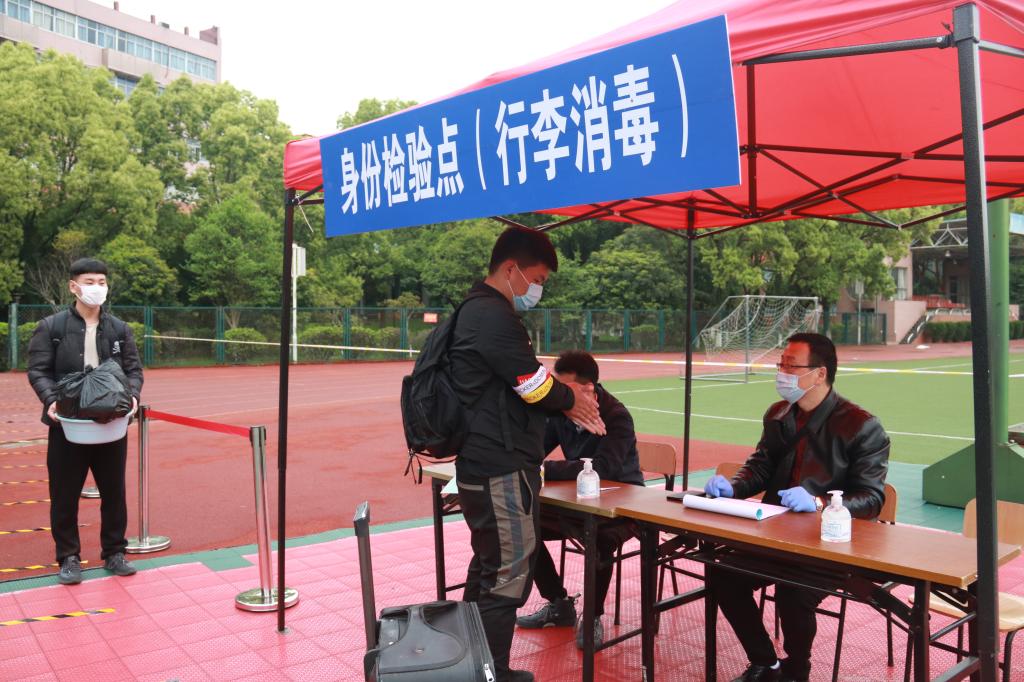操场行李消毒、体温检测