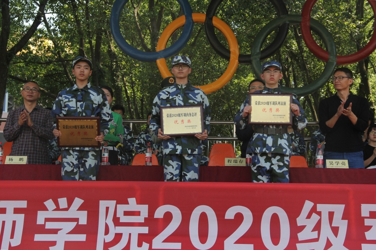 最后黄路瓯院长宣读了表彰决定,陈金宣等20名学生被评为2020级军训标兵,2003、2004班获得军训队列评比优胜奖,2002获得军训内务评比优胜奖。