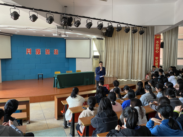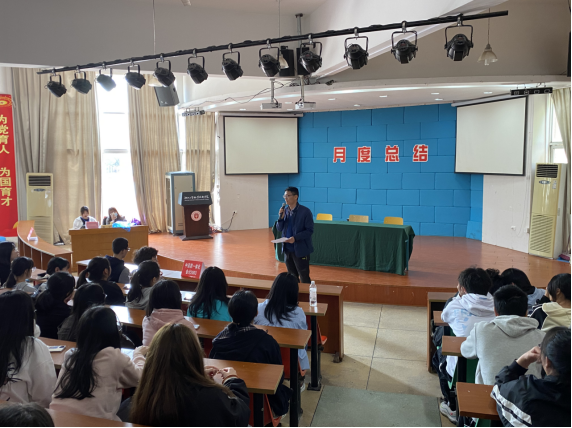 为了更好地总结开学以来我院思政工作,进一步加强学生遵纪守法意识,我院分别于4月7日和4月8日中午12:30在一号教学楼阶梯教室召开学生工作月度例会,例会由辅导员李涛老师主持,吴学亮副书记主讲。