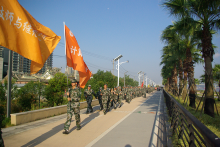随后,各班列队整理着装,以良好精神面貌开始绕岛徒步。班旗高扬,口号阵阵,队列整齐,成为七都岛上一道靓丽的风景线,引得路人纷纷驻足欣赏。期间天气炎热,在学校保卫、后勤、医务室的陪同下,我校师生遵守纪律,做到不怕累不掉队,保持所经地区卫生干净,更有班级在徒步途中,高声歌唱军歌,有效调节和缓和了同学劳累的情绪状态,同学们之间彼此鼓励、互相搀扶,勇敢而坚定地迈出自己的脚步。也许,他们早已暗暗坚定心中的信念,势必有种不达目的誓不罢休的豪言壮语。共同体验拉练过程中的酸甜苦辣,经过近四个小时圆满完成了环岛16公里的徒步活动。同学们纷纷表示自己的意志得到了极大的锻炼,受益匪浅。