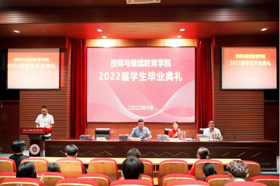 6月29日下午,“青春逐梦正当时,扬帆起航建新功”——技师与继续教育学院2022届学生毕业典礼在六号楼学术报告厅举行。典礼同步面向未能亲临现场的同学进行线上直播,使大家感受毕业盛典的庄严和隆重。