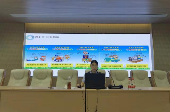 2022年9月23日上午,我院在阶梯教室举行了以“平安校园,青春无诈”为主题的2022级新生法制教育讲座,邀请温州市鹿城区公安局反诈中心陈乐乐警官主讲。
