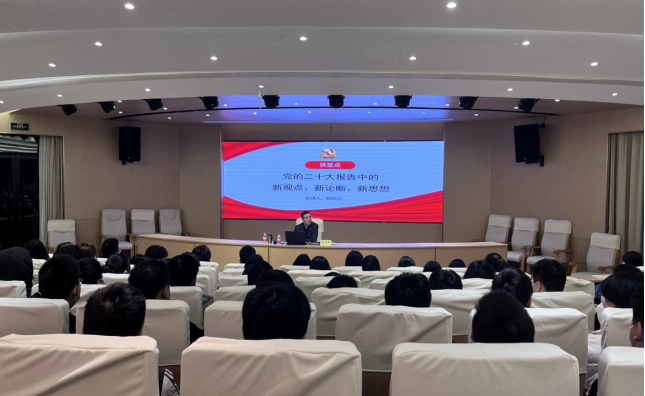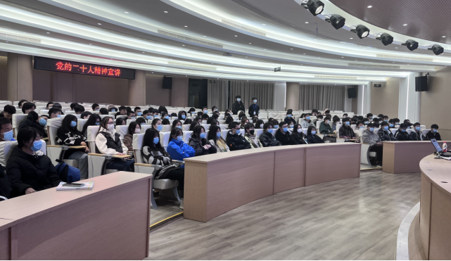 为深入学习宣传贯彻党的二十大精神,把青年学生的思想和行动统一到党的二十大精神上来,把智慧和力量凝聚到贯彻落实党的二十大各项任务中去。12月6日晚上,我院在阶梯教室组织开展党的二十大精神专题宣讲活动。本次宣讲由学院党总支书记程瑞存主讲,2020级全体学生参加。