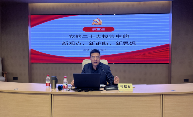 宣讲伊始,程书记首先结合党的二十大报告中提出的一系列新观点、新论断、新思想、新战略、新要求,为我们指明了前瞻性思考、全局性谋划、整体性推进职业教育改革发展的科学思想。