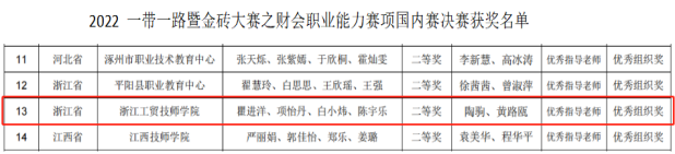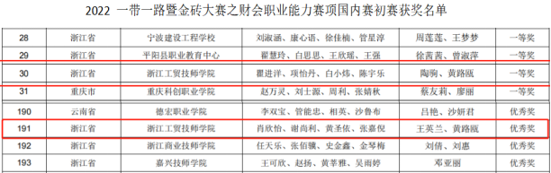 2022年12月3日,我院学生参加“2022一带一路暨金砖大赛之数智化财会职业能力”国内赛(中职组),喜获国家二等奖、浙江省一等奖。