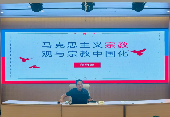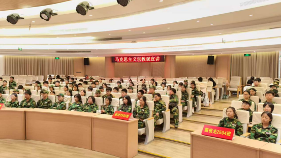 为深入贯彻落实党的宗教工作基本方针,帮助同学们深入了解马克思主义理念,提高对党的创新理论的认知水平,加深对党的历史、文化、宗教观的理解,引导青年学子树立科学的宗教观念,培养正确宗教观,坚定马克思主义无神论,培养德智体美劳全面发展的青年学生,我院于2025年9月15日下午,在1号楼阶梯教室隆重举行了“马克思主义宗教观与宗教中国化”专题讲座。本次讲座荣幸邀请到学校马克思主义学院蒋杭波老师担任主讲嘉宾。全体2025级新生参加讲座。