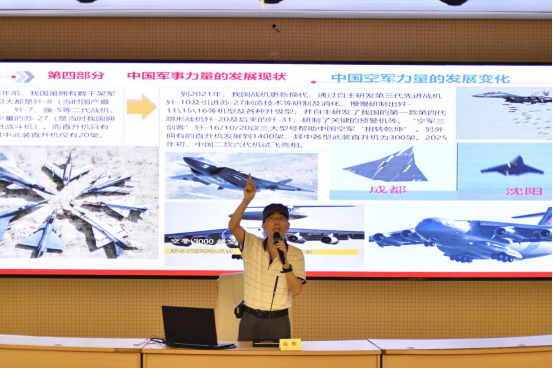 第三讲,郑君山老师聚焦于“中国古代军事思想”,深入解读了中国解放战争取胜的深层原因。他结合国共内战初期兵力、装备、控制区的悬殊对比,阐释了“道、天、地、将、法”的制胜逻辑。郑老师指出,传统军事文化中的智慧对当下强军兴军新征程具有重要启示意义。在新时代强军征程中,同学们应积极传承并运用中国传统军事文化,这是提升未来战争胜率的关键所在,有助于我们在军事领域不断取得进步。
