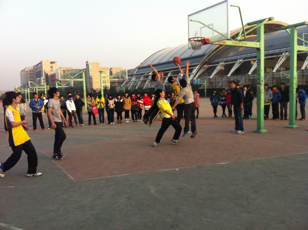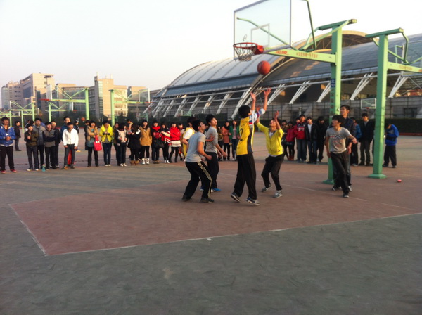 为丰富同学们业余生活,缓解学习压力,增强体魄,培养同学们的兴趣爱好,也加强了班级之间的联系与沟通,增强凝聚力。由学管中心和学生会主办的2012年篮球赛于12月6日拉开了帷幕。此次活动由各个班级之间组队抽签参与篮球友谊赛。虽然规模不是很大,但参与度很多,持着比赛公平公正公开的原则,在裁判和球员共同努力下,比赛准备工作很顺利,并取得圆满成功。
