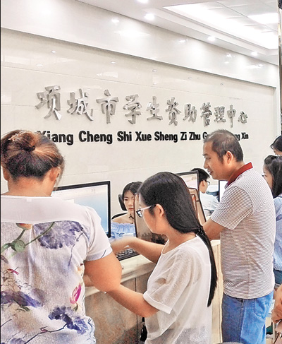 河南省周口市项城市学生和家长在学生资助管理中心办理助学贷款。 资料图片